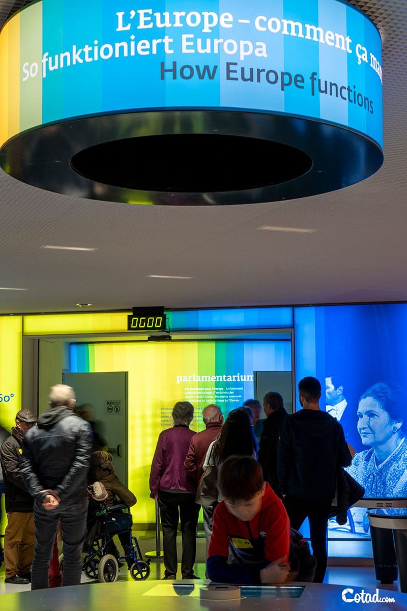 There is also a cinema room that offers a film on European issues in the 24 official languages, as well as an exhibition on the journey of Simone Veil, the first elected President of the European Parliament and the first woman to hold this position.
