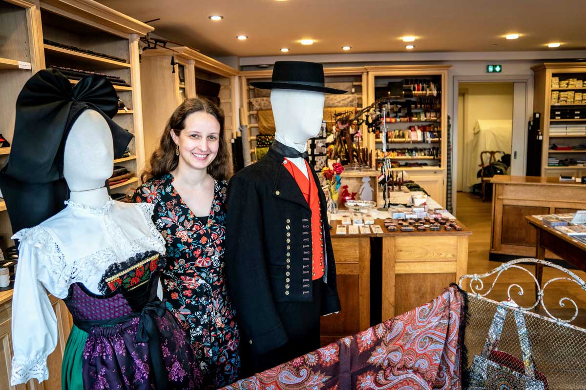 Maison Bossert, a Strasbourg institution since 1825, has played a key role in preserving this tradition. Today, it is run by Anne Wolff, an art historian with a passion for Alsatian folklore. She supplies made-to-measure costumes to regional folk troupes, and has even launched a contemporary ready-to-wear collection in collaboration with the Mulhouse workshop Du côté de chez Souen. In her boutique you'll also find original haberdashery and typical Alsatian fabric: kelsch.